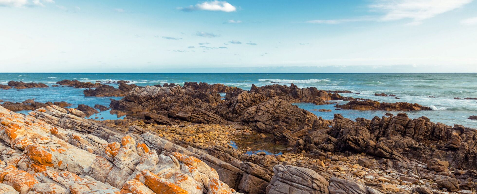 Agulhas National Park ligger precis där Indiska oceanen och Atlanten möts och omfattar 200 kvadratkilometer med blomstrande landskap (särskilt mellan juli och oktober) och ett hav fyllt av valar, delfiner, tumlare och till och med kap-pälsälar. Här finns inga traditionella safariturer, men det glömmer du snabbt. Strandpromenader har sällan varit mer imponerande, särskilt eftersom kusten också är hem för otaliga skeppsvrak från de tidiga upptäcktsresande som trotsade de vilda haven vid Afrikas sydligaste spets. Ladda kameran och följ strandpromenaden för ikoniska bilder av fyren vid Cape Agulhas och monumentet Map of Africa på stranden!