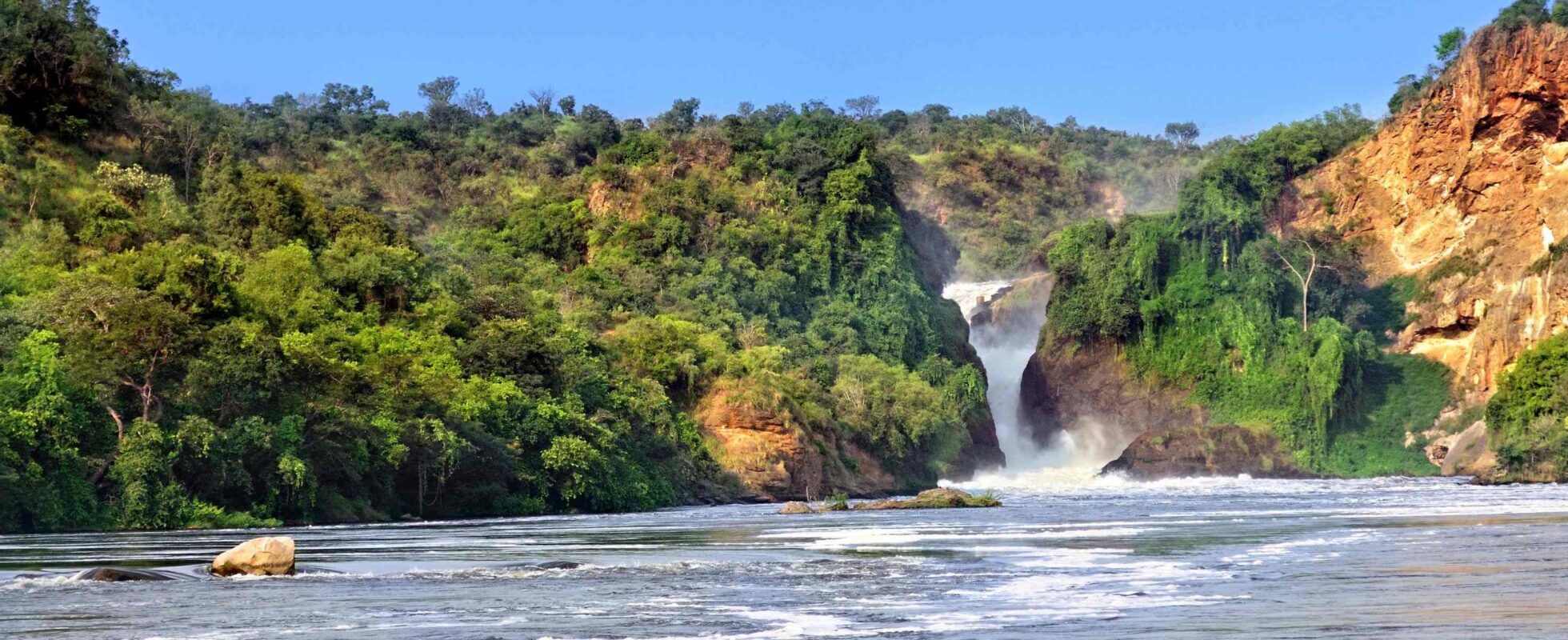 Gå ombord på en dubbeldäckarbåt för en klassisk Nilen-kryssning i Murchison Falls National Park! Färden tar dig två timmar uppför floden (och en timme tillbaka) medan du spanar efter flodhästar och krokodiler i vattnet samt många andra djur längs stränderna. Båten tar dig slutligen till foten av de imponerande Murchisonfallen, som störtar hela 43 meter ner. Här kan du känna de friska vattendropparna i ansiktet medan du ser vattnet dåna nerför klipporna. Fallen är så kraftfulla att det är omöjligt att komma riktigt nära, men tro oss, du kommer att bli imponerad ändå!