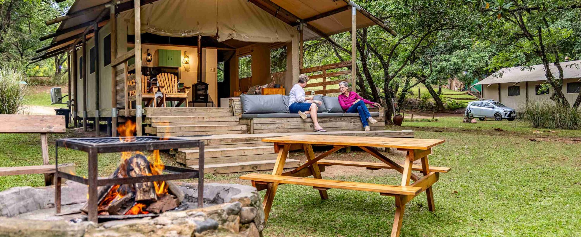 Bara 30 kilometer från Phabeni Gate i Kruger National Park ligger AfriCamps at Mackers, som kombinerar lugnet vid floden med bekvämligheten av boutique-glamping i hjärtat av Sabie Valley. Anläggningen erbjuder tält med privata badrum, duschar, sittgrupper och fullt utrustade kök. Här kan du koppla av vid poolen, fiska eller promenera längs Sabie River för att se de vilda forsarna uppströms. Frukostkorgar finns tillgängliga mot en extra avgift, medan grillning gör middagen till en rolig, hemlagad upplevelse. Campingen har också en butik som säljer nödvändigheter, kalla drycker och glass. Barnen glöms inte heller bort, eftersom de kan måla stenar eller leka i Kids Zone. Allt detta, tillsammans med ugglornas och buskbebisarnas läten på natten, gör vistelsen både naturnära och bekvämt utrustad.
