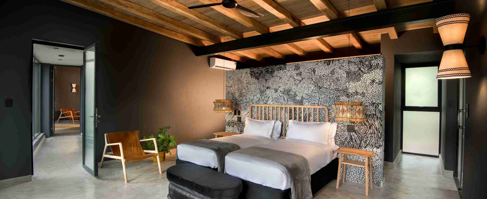 Mbazo Safari Lodge är en femstjärnig oas i Black Rhino Game Reserve, som utgör en exklusiv del av Pilanesberg National Park. Lodgen består av fem individuellt inredda chaleter – alla döpta efter Afrikas Big Five – och erbjuder king size-sängar, fullt utrustade minibars, WiFi, privata skuggade utsiktsdäck samt eleganta badrum med fristående badkar, rymliga duschar och uppfriskande utomhusduschar. Vissa chaleter har dessutom en egen eldstad och en vedeldad jacuzzi – perfekt för stjärnskådning till tonerna av bushens nattljud. På plats finns även ett spa för total avkoppling, samt en härlig pool omgiven av bekväma solstolar. Matupplevelserna på restaurangen Shongololo är en kulinarisk höjdpunkt där säsongsbetonade gourmetmenyer hyllar regionens smaker. Familjer är varmt välkomna – det finns en dedikerad familjesvit och det populära Kids Adventure Safari Club – och alla gäster bjuds på två guidade safariturer per dag, komplett med drycker och mellanmål.