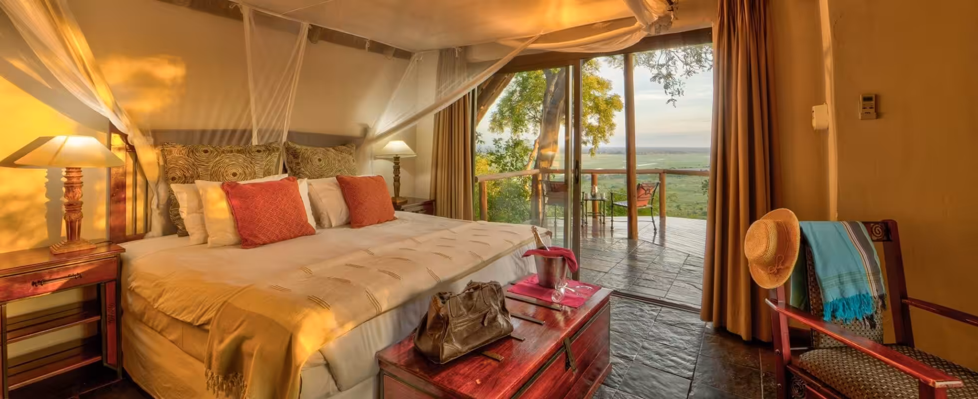 Högt uppe på en sluttning på den lugnare västra sidan av Chobe National Park ligger Muchenje Safari Lodge i Chobe Forest Reserve utan staket mellan lodgen och parkens gräns – så djuren strövar fritt förbi! De 10 privata halmtakstugorna och en familjestuga har alla en privat terrass, eget badrum, luftkonditionering, takfläkt och utsikt över den säsongsbetonade flodslätten. Familjestugan har dessutom en mezzanin med sovplats för två barn och två badrum. Måltiderna intas gemensamt i huvudlodgens matsal med utsikt över floden och ett vattenhål, men det finns även möjlighet till privat middag, lapa vid poolen och bush braai i en närliggande boma (kockarna tillagar även vegetariska, veganska och glutenfria rätter!).