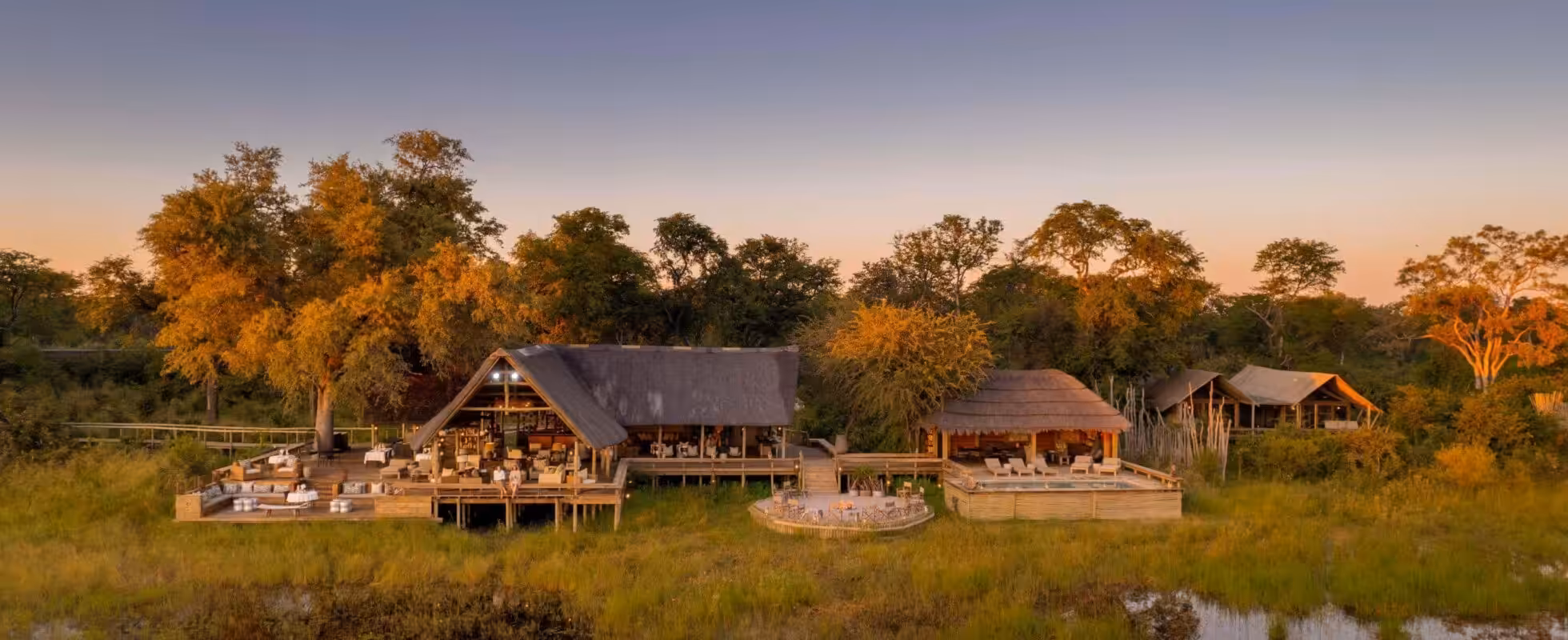 Sable Alley ligger vid stranden av en liljeklädd lagun i Khwai Private Reserve (ett 200 000 hektar stort viltreservat som gränsar till Moremi Game Reserve i östra Okavango) med vidsträckt utsikt över flodslätterna bortom. De 12 tälten (tio tvåbäddsrum och två familjerum) är uppförda på trädäck och har alla en stor säng, sittgrupper inomhus och utomhus samt ett eget badrum med både inomhus- och utomhusdusch (alla solcellsdrivna). I huvudområdet finns en lounge, bar, eldstad och pool, och måltiderna serveras privat – så du slipper obekväma middagsdiskussioner om du inte vill.
