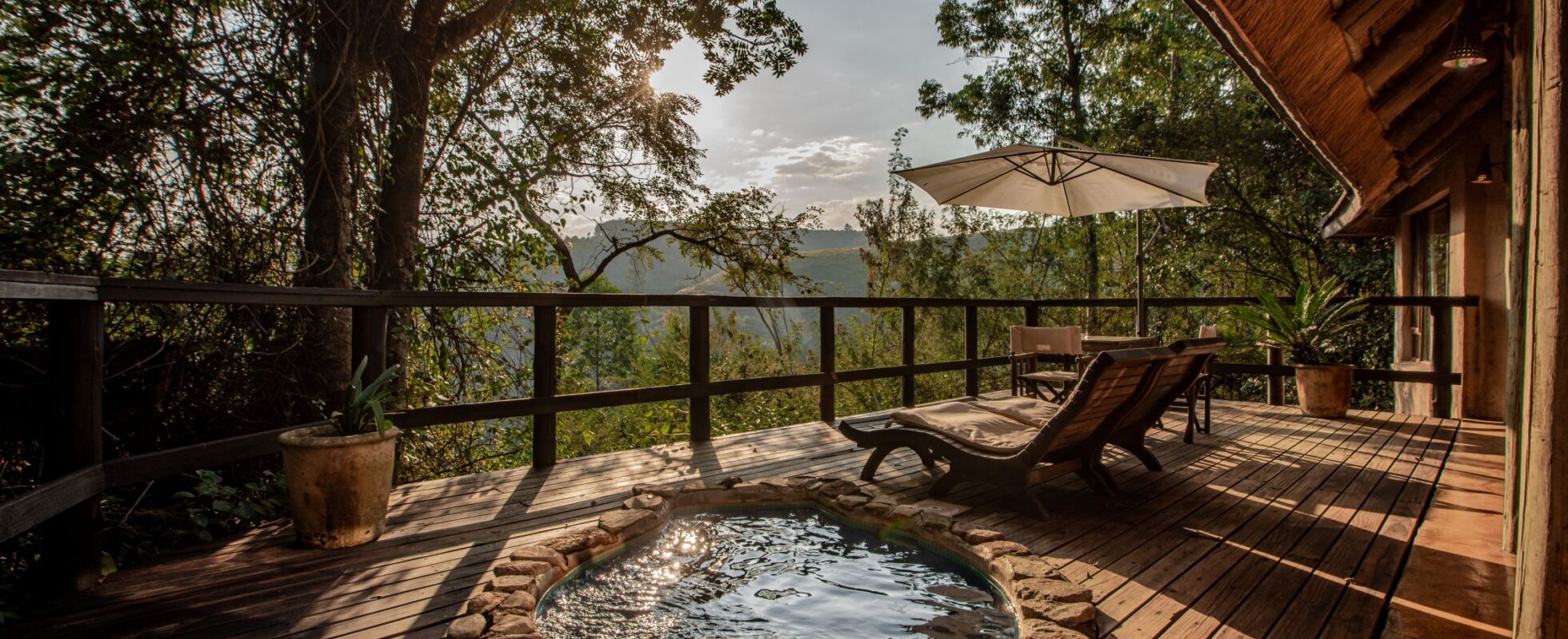 Tanamera Lodge ligger i Hazyview, Mpumalanga, bara några minuters bilresa från Phabeni Gate vid Krugerparken. Den här lilla lodgen har endast sju halmtäckta chalets – alla byggda för två – vilket ger en intim och avkopplande upplevelse. Varje chalet är utrustad med en king size-säng, mysig eldstad, myggnät och ett lyxigt badrum med ett gigantiskt badkar (stort nog för två!) och ett vattenfallsdusch. Måltiderna är en riktig höjdpunkt, frukosten består av en rejäl engelsk frukost kompletterad med dagliga överraskningar som pannkakor eller muffins. Middagen är en varierad trerättersmeny med lokal touch. Du kan välja att äta på din privata terrass eller vid lodgens huvudbyggnad, båda under stjärnorna, förstås!