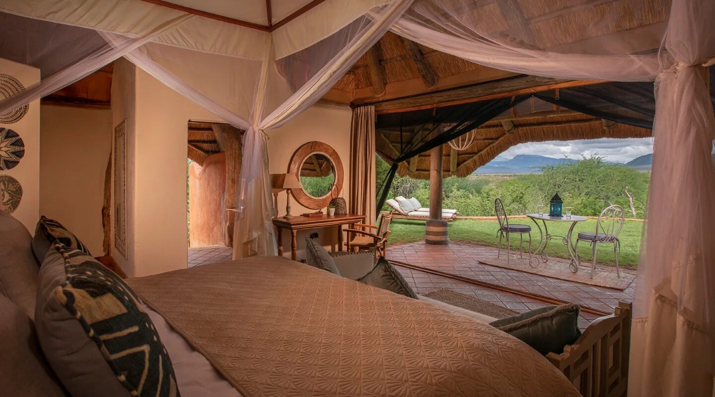Rummen kombinerar medelhavsk elegans med swahili-inspirerade detaljer och har egna badrum med gott om naturligt ljus samt privata verandor. Familjerummen har öppna sällskapsytor, medan bröllopssviten erbjuder ett stort badkar med utsikt över Taita Hills och en avskild trädgård. För en ännu mer unik upplevelse finns lodgebäddar under stjärnorna, placerade vid ett vattenhål – så att du kan somna under Afrikas himmel med full komfort. Vattenhålet lockar säsongsvis till sig mängder av djur, bland annat stora elefanthjordar och kvällarna bjuder på magiska stunder utan skärmar – bara du och naturen.