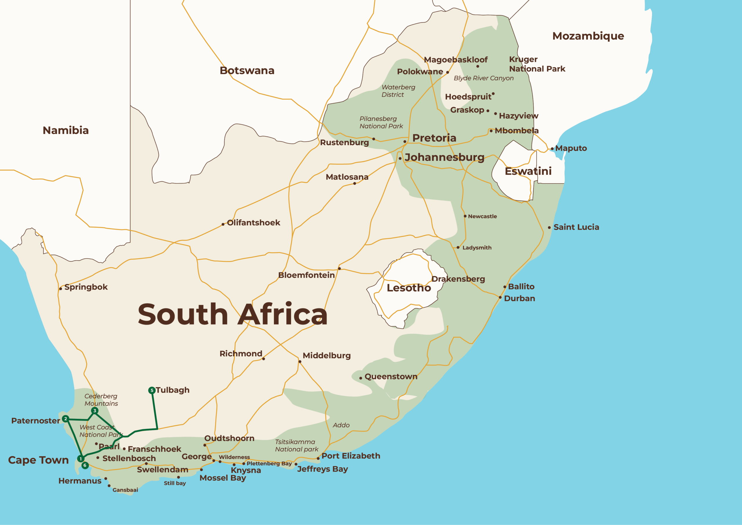 Till sist knyter Kapstaden ihop resan i stor stil. Med storslagen utsikt från Taffelberget och en champagnekryssning i solnedgången vid glittrande V&A Waterfront sätter du pricken över i:et på din Sydafrikaresa.